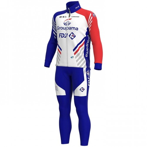 Cykeltrøje Langærmet + Bib Cykelbukser 2020 Groupama-FDJ N001